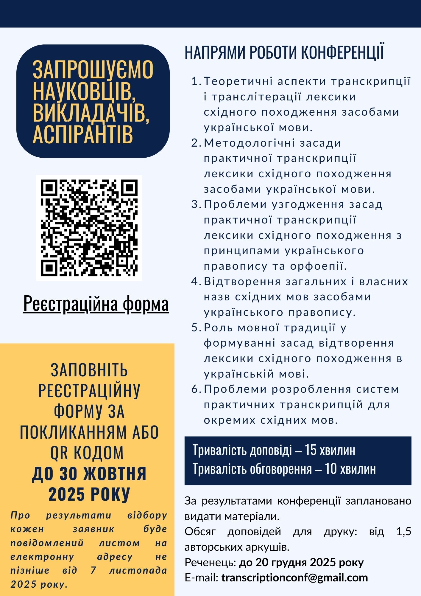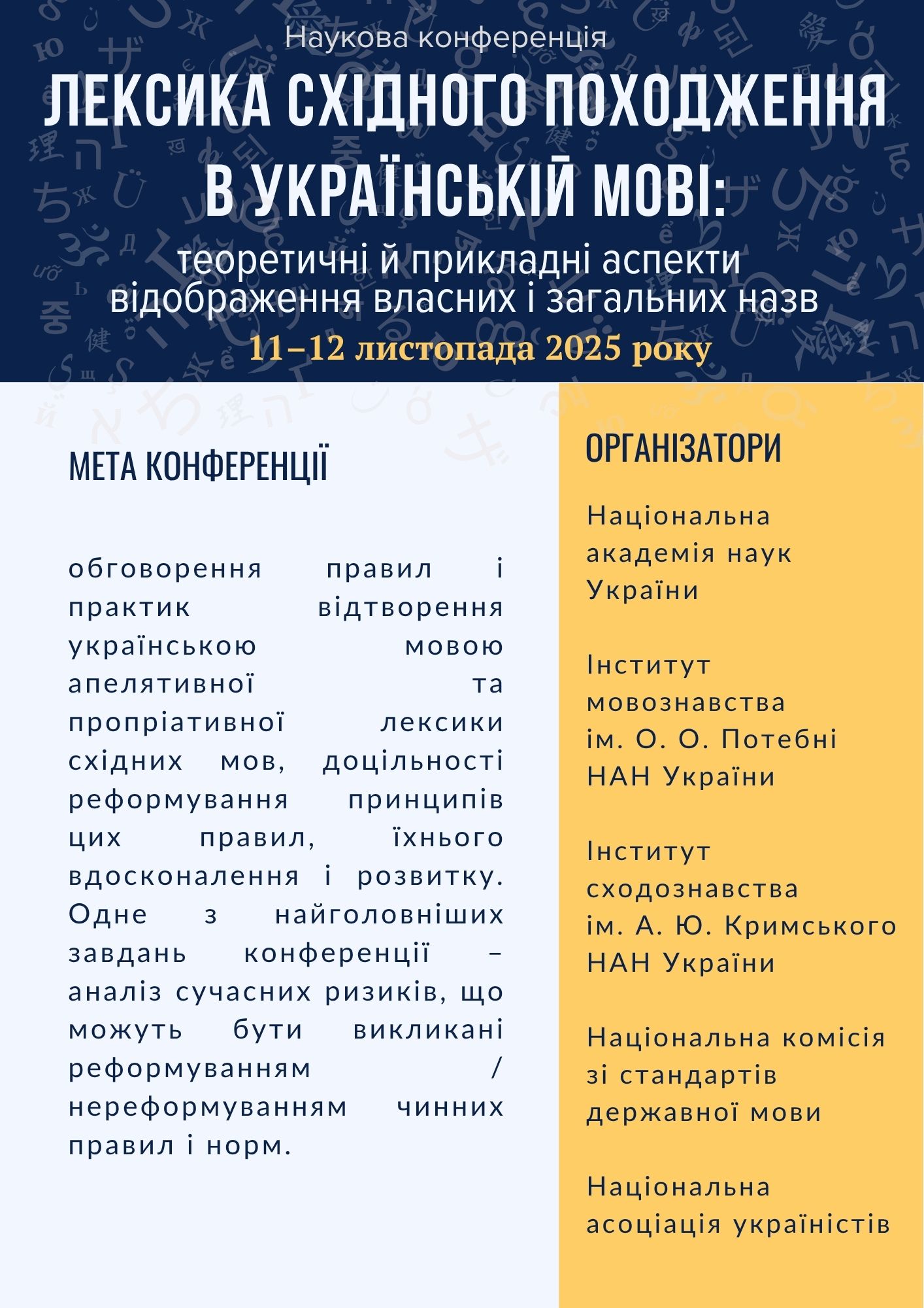 Наукова конференція «ЛЕКСИКА СХІДНОГО ПОХОДЖЕННЯ В УКРАЇНСЬКІЙ МОВІ: ТЕОРЕТИЧНІ Й ПРИКЛАДНІ АСПЕКТИ ВІДОБРАЖЕННЯ ВЛАСНИХ І ЗАГАЛЬНИХ НАЗВ»